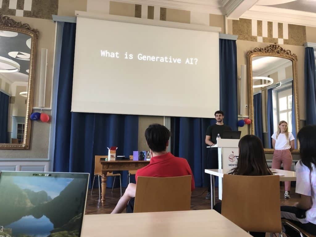 Led by two Montana alumni Luisa Lager and Dominic Graber, who are also the co-founders of an AI company Mindmode, students had a lot of fun at their AI Superhero Workshop. They were introduced to AI in a fun, engaging way, learning to distinguish between real and AI-generated images and even creating their own superheroes. Using AI tools like ChatGPT and Midjourney, they crafted fascinating characters, stories, unique superpowers, then later presented their work to the class. The workshop also addressed the limits of AI and underscored the importance of critical thinking, showcasing how AI can both simplify complex concepts and spark creativity.