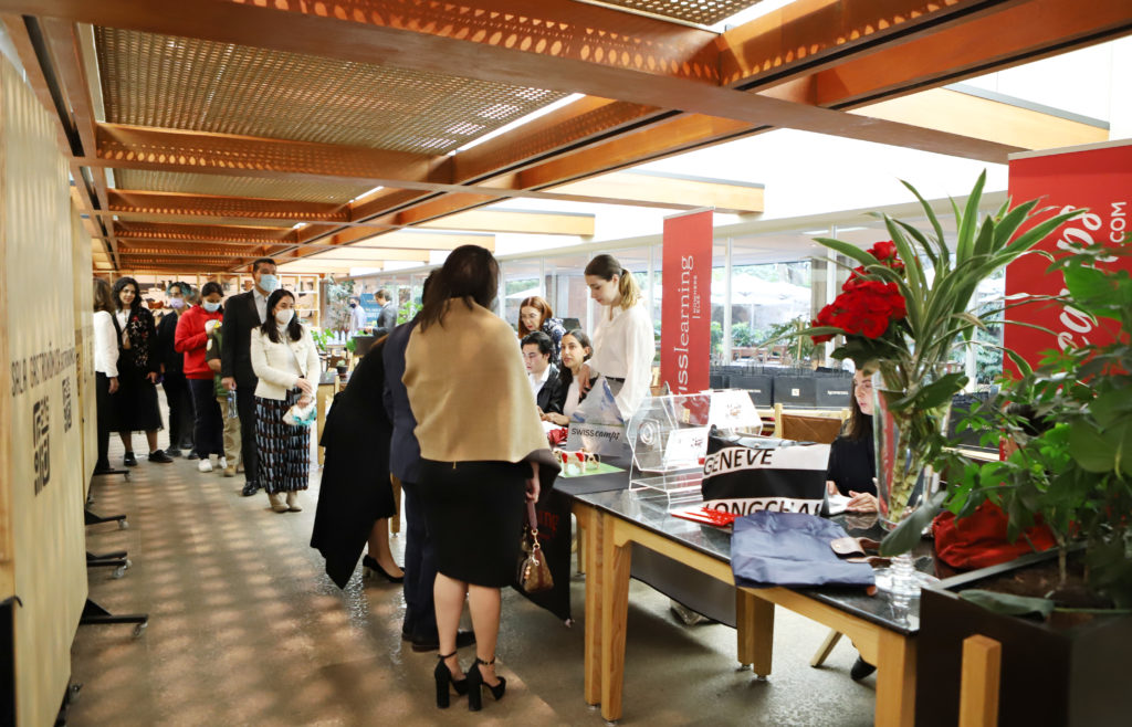 nuestros amigos y ex alumnos de Suiza a una conferencia seguida de un cóctel.